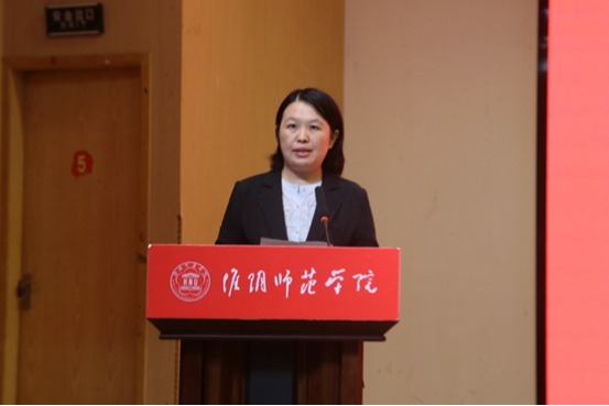 副经理孙庆英作为教师代表发言。有着师长和学姐双重身份的孙经理从自己踏入淮师校园的那一刻起与新生分享自己求学的成长故事,和新生就国家与社会需要什么样的计算机人才以及大学四年如何规划两方面进行了探讨,希望新生能够做到根正苗红、软硬兼修、跨界融合,并在大学四年明确目标,分阶段步步为营地把自己培育成为一名卓越工程师。