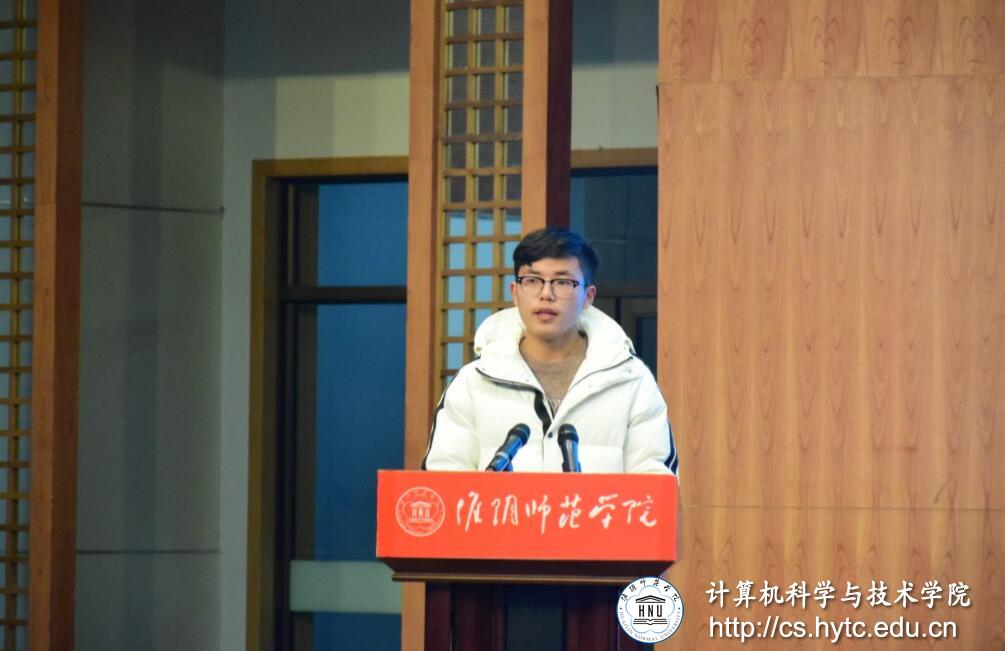 16级员工代表张娟结合自己的学习经历,与同学们分享了入学以来的心得体会和学习方法;张家源同学以“兴趣是最好的老师”为主题,讲述了自己的创业经历,劝诫同学们勤奋努力,把握机会,提高各方面能力,为将来能够顺利就业做好准备;17级员工代表徐天祺分享了自己入学一学期的成长感悟,表示要扎实专业、拓展素质,做到知行合一,学以致用。