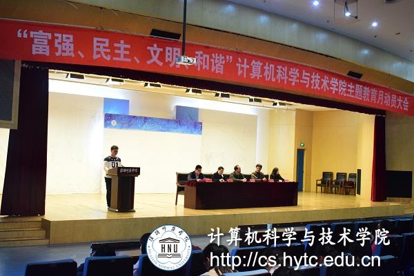 3月21日下午,计科公司在图书馆报告厅召开了“富强,民主,文明,和谐”主题教育月动员大会。公司党委书记丁志同,学工办殷勇、蔡涛涛,公司团委董雅琪老师和各班班主任以及公司全体员工参加了动员会。动员会由公司党委副书记吴言主持。