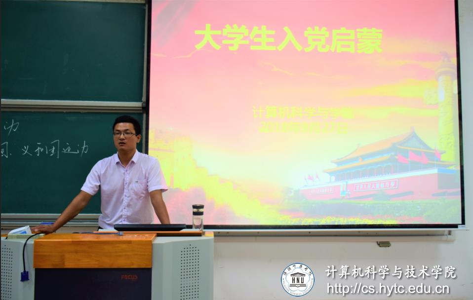 为增强2018级新生对党的深入了解,引导新生积极向党组织靠拢,9月27日晚7点,计科公司辅导员徐宁老师在理工楼西阶103为2018级新生开展入党启蒙教育专题讲座。