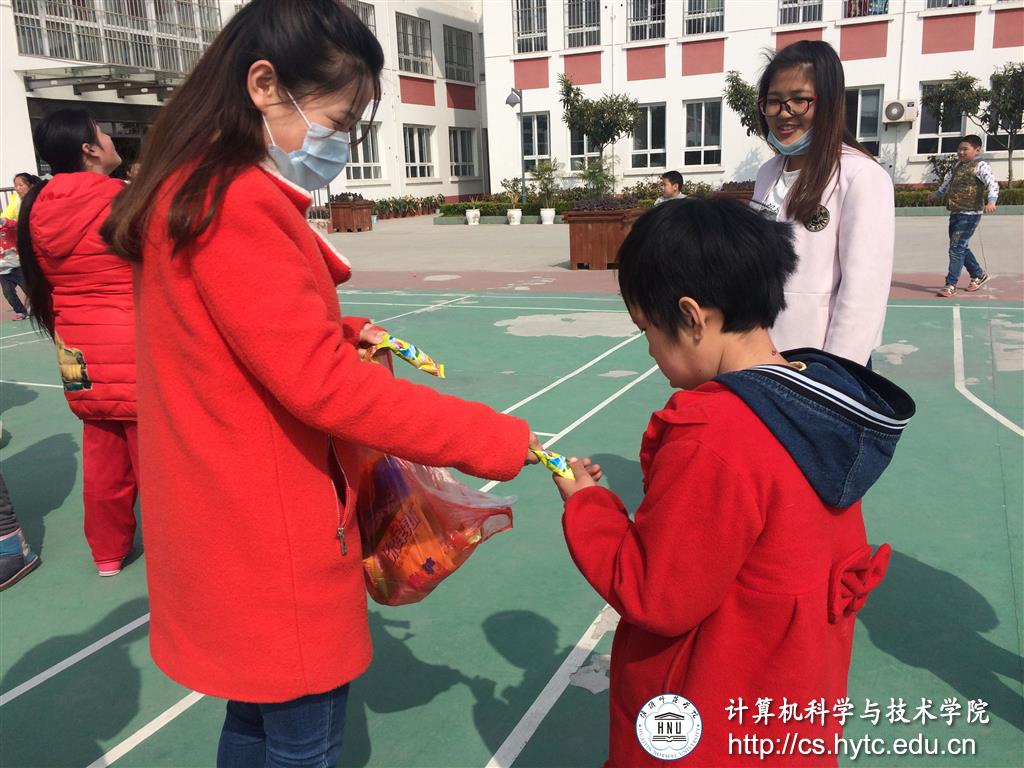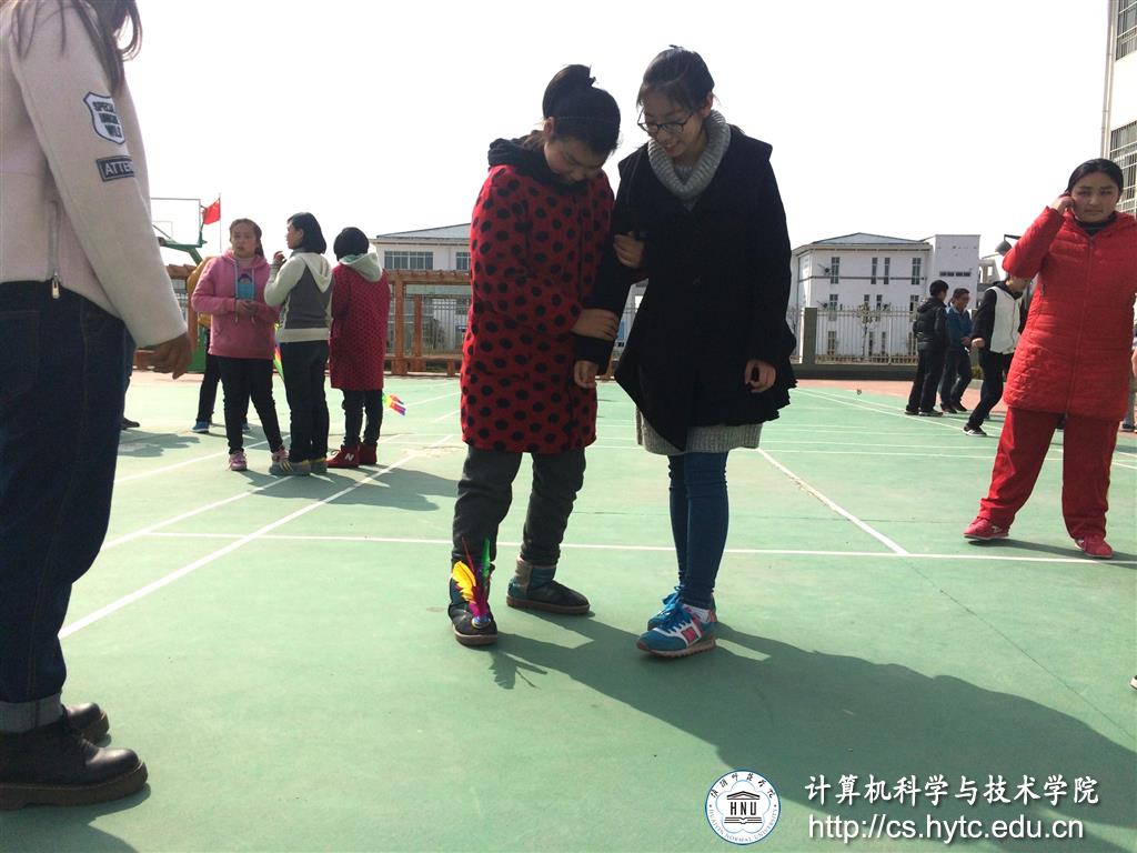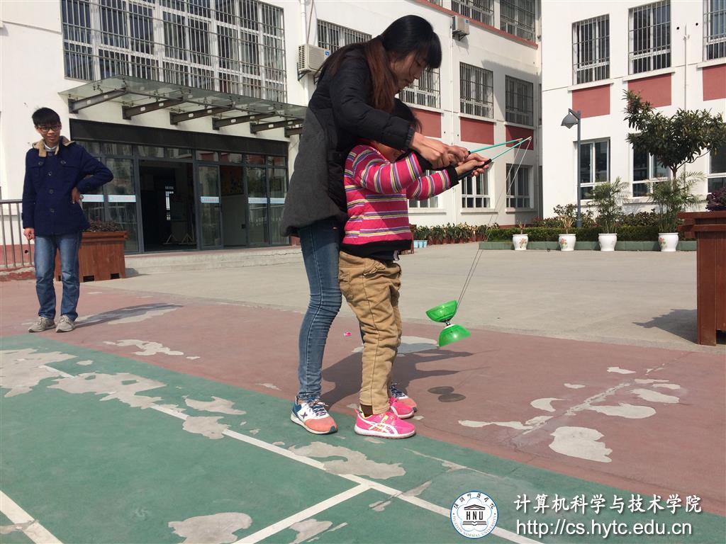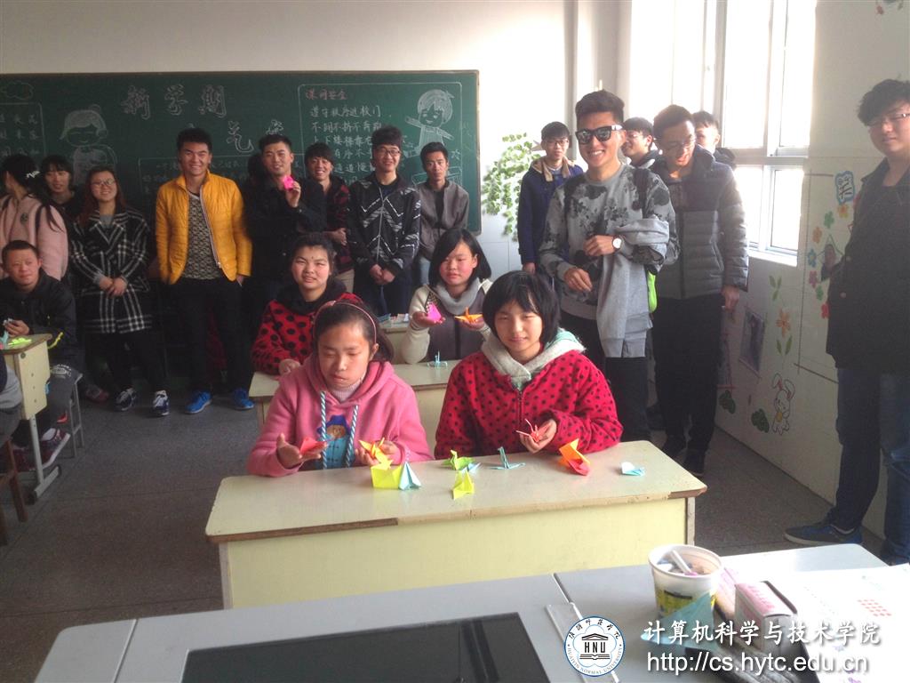 活动由“互相介绍”、“兴趣活动”、“亲情互动”三个环节组成。同学们首先进行抽签组成小组,彼此熟悉之后,相互介绍了本组人员。同学们由起初的尴尬羞涩变得自然熟悉,渐渐地,共同话语也开始增多。在“兴趣活动”这个环节,同学们自由组合,每个人都积极主动地参加自己擅长的体育活动:有的打篮球,有的跳绳,有的抖空竹……每个小组的分工都十分明确,操场上空洋溢着加油声和呐喊声。一张张千纸鹤,一声声问候,表达了同学们对特殊儿童最真挚的祝福。最后,由黄东勇和班级同学共同表演的“小苹果”更是成为一大亮点。动感的音乐,滑稽的动作,让许多孩子彻底放下了心中的戒备,开怀大笑。