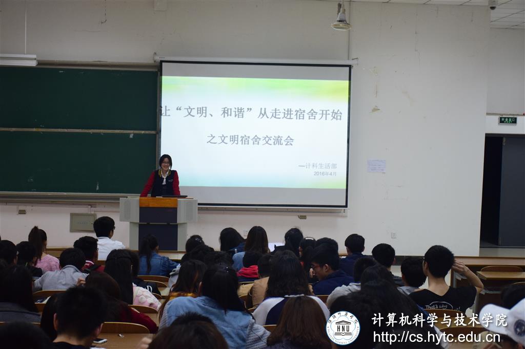 为了加强宿舍的管理,增强宿舍的文明和谐交流。4月13日晚,今年会在理工南楼西阶103召开了宿舍文明交流会,大一大二全体员工宿舍舍长参加了此次会议,丁铭珠担任此次会议的主讲人。