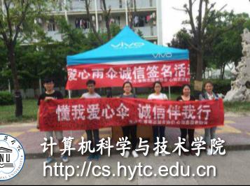 在傍晚的时候,志愿者们的横幅上已经写满了签名。他们的脸上挂满了开心的笑容,因为他们看到的不只是满满的签名,更是同学们对于爱心伞活动的支持与期待。