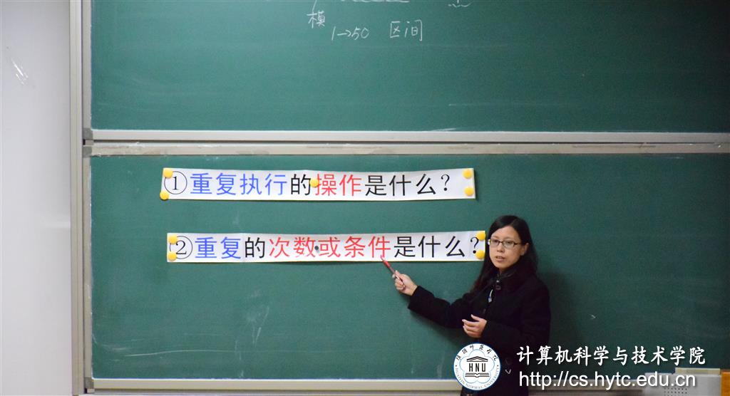 开课前,黑板上“重复执行的操作是什么?和重复的次数或条件是什么?” 两个大大的问题就吸引住了同学们的目光。接着,课堂就在同学们的期待中开始了。田老师用一个猜数游戏的趣味题贯穿始末。从“一次只猜一个数”到“猜多次至猜正确”再到“猜五次以内”最后到“猜五次不对就猜下一个数”层层递进。随着编写程序的难度的逐步增加,同学的热情也不断高涨起来,想着黑板上的两个问题,跟着老师的步骤一起编写代码。过程中虽然出了不少问题,但经过同学们共同地将问题完美的解决了。