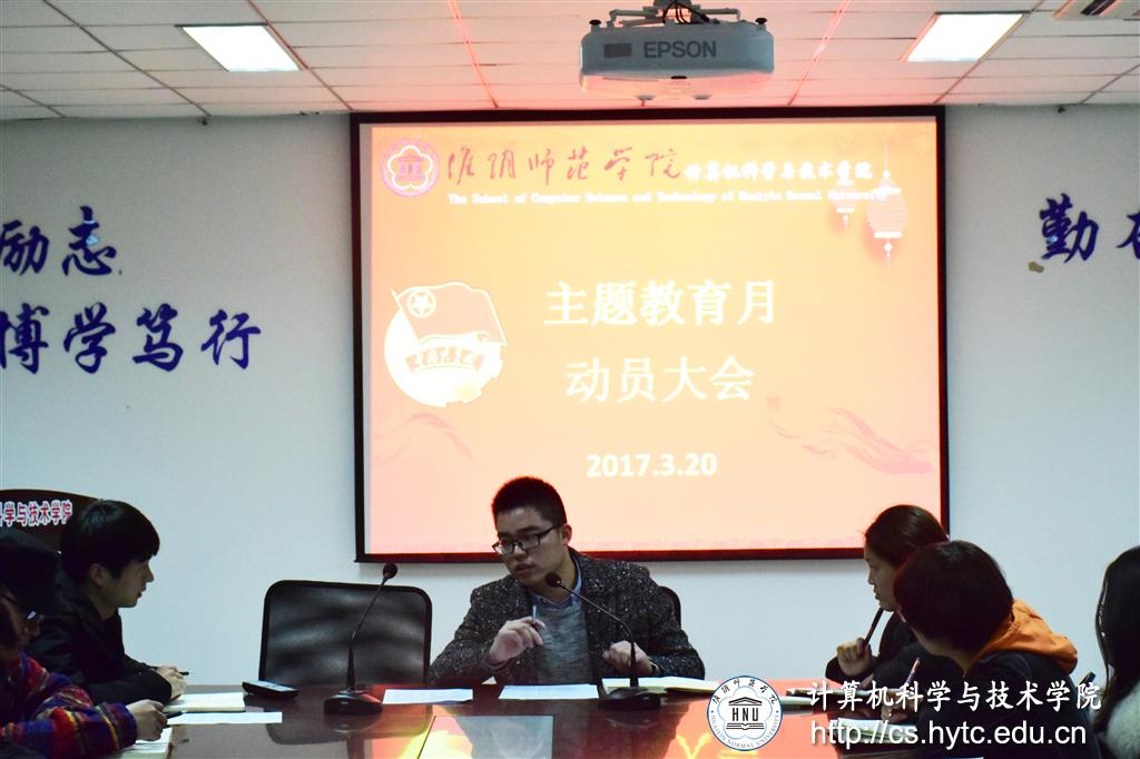 为积极响应公司以“理想、信念、担当”为主题的主题教育月,3月20日下午6:30,由蔡涛涛老师主持,团委副书记、员工会主席及主席团、团委员工会各部门副部、生活部全体成员参加的计科公司主题教育月动员大会在理工北楼新会议室召开。
