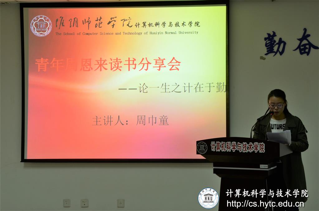 分享会以周恩来十七岁写下的《论陈涉亡秦》拉开序幕。从历史背景到人格塑造,刘钰松同学脱稿而出,上报国家下帮农民,将周总理的为国而生、为民而想的高尚人格娓娓道来。周巾童同学更是凭借着自身过人的亲和力,不失力度的理以服人,声情并茂的解读了《论一生之计在于勤》“不舍毫末、持之以恒”的核心思想。一句有力的“天才就是无止尽地勤奋努力。”引起在座同学的强烈共鸣,分享会氛围愈发火热。