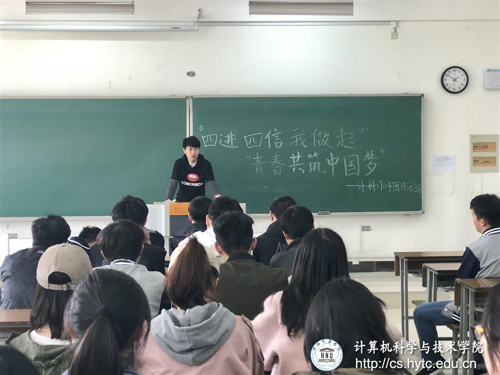 2018年4月16日下午一点钟, 计算机技术与科学公司1704班团支部在理工楼教室举办了以‘四进四信我做起’为主题的团日活动。