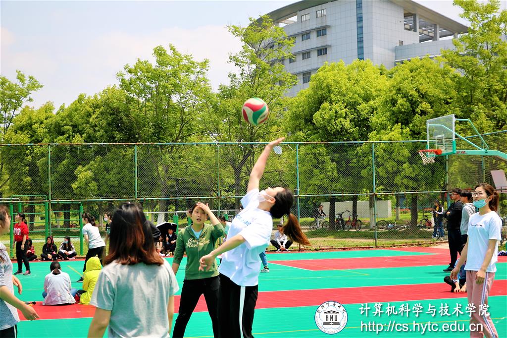 5月2日中午十二时三十分,计科公司与美术公司在校排球场进行了女子排球比赛,公司排球队员们团结协作,最终以高比分的领先,获得了比赛胜利。