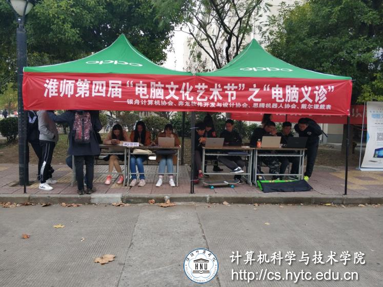 为让同学们能够接触和学习到基础的电脑维修和维护知识,促进同学间交流,11月10日至11月11日,银舟计算机协会在中国银行门口举办了为期两天的“淮师校园电脑义诊”活动。