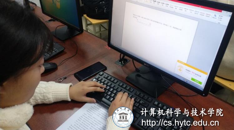 比赛前,计算机协会的社员们先为参赛选手说明比赛的得分标准以及注意事项,根据成员打字的时间和错误率进行评判。为保证比赛的公平性和严谨性,打字内容统一发放。教室内,充满着紧张的氛围和敲击键盘的声音,参赛选手们的手指灵活地在键盘中飞快的跳动着,目光紧盯着屏幕,非常认真、仔细的完成试题。经过这场紧张而有序的比赛,发现同学们的正确率都比较高,但还有一些同学的打字水平还有待提高。