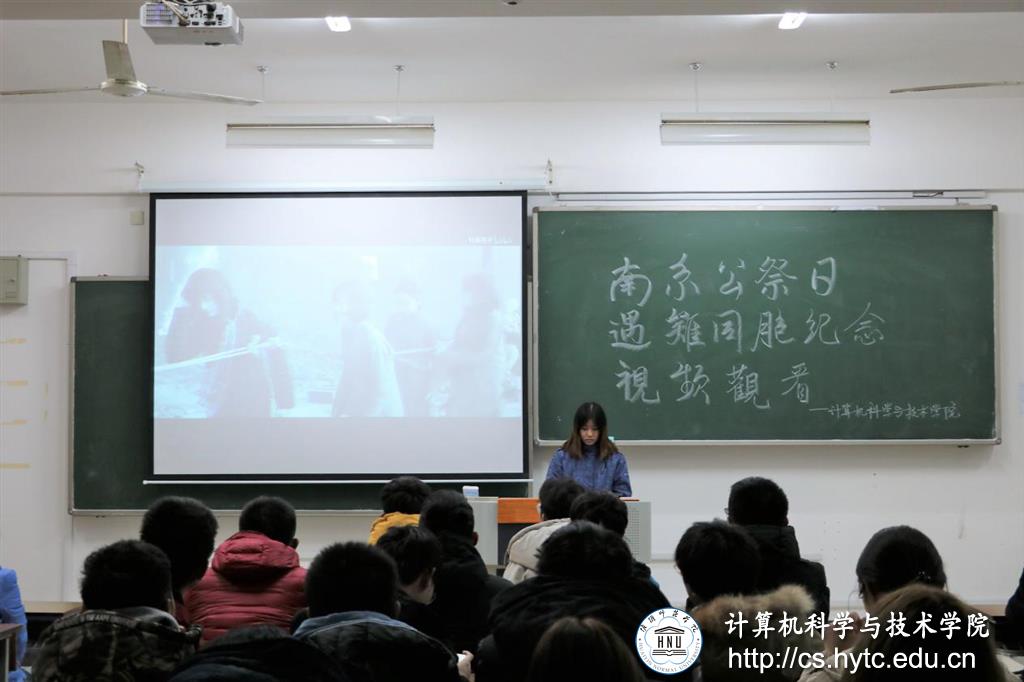 活动中,同学们在了解南京大屠杀的历史和国家公祭日的意义之后,共同观看了电影《南京!南京!》中关于南京大屠杀的片段。在视频放映过程中,全场一片安静,气氛凝重严肃,屏幕中一幕幕惨绝人寰的屠杀场面,令在场同学悲痛万分,纷纷对日本侵略者的累累罪行表示愤慨。活动组织者张玺冰在采访中说:“希望通过电影片段的观赏,激发同学们的爱国情怀,永世不忘那场劫难中牺牲的无数中国同胞们。”