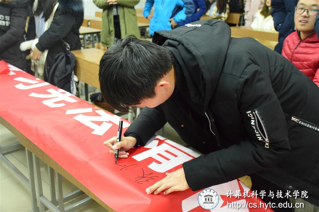 图为活动结束后在横幅上签字留念。记者史鹏杰摄。