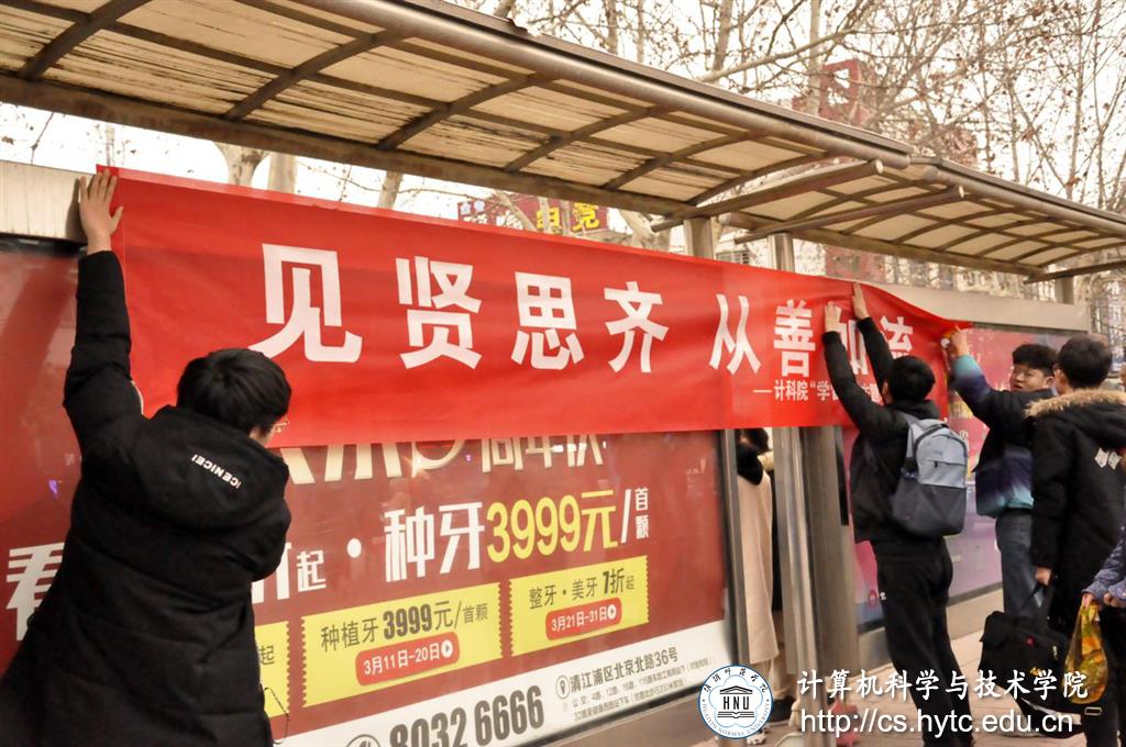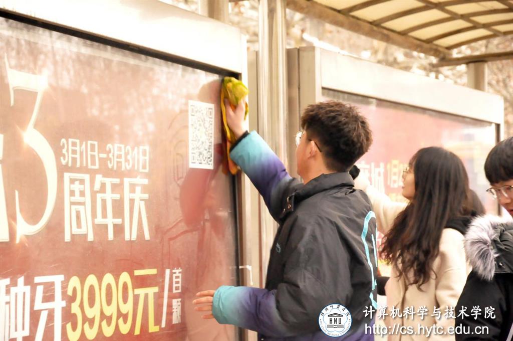 此外,同学们还自发前往校园南门公交站牌前,对公交站牌进行清扫、维护,为美化市容贡献一份力量。清扫之后,同学们在站牌上悬挂起“见贤思齐,从善如流”的学雷锋主题横幅,让更多的人感受到雷锋精神的巨大力量。活动最后,同学们还在横幅上签名,决心以雷锋精神严格要求自己,把自己的青春力量奉献给更多需要帮助的人。
