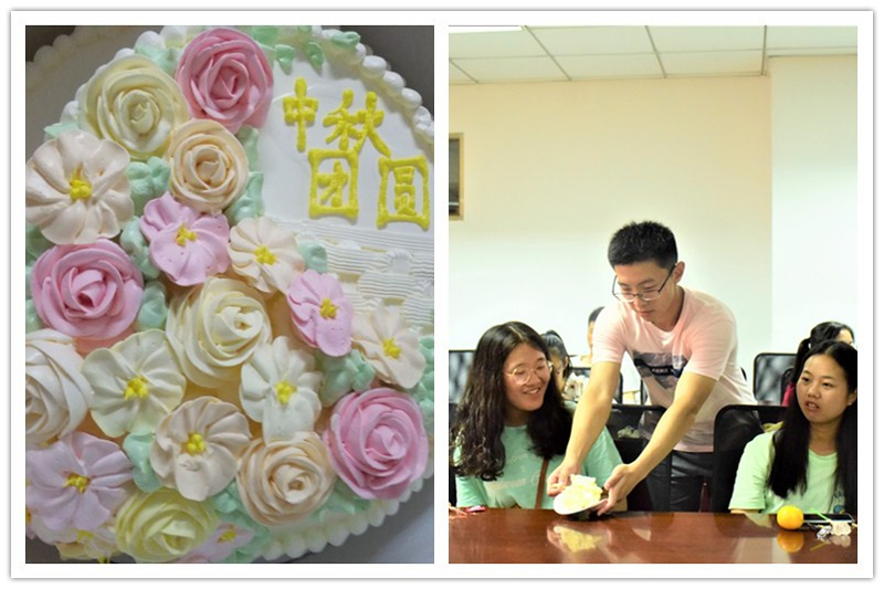 活动中,计科公司还特别为外省新生准备了一个大型的“中秋团圆”蛋糕,甜蜜的蛋糕让大家不仅感受到了计科公司大家庭的温暖,也使整个活动的气氛更加热烈起来。大家纷纷离开座位,玩起了报纸拔河、绕口令、接歌词等小游戏,欢笑声此起彼伏,接连不断。最后,大家聚在一起,深情合唱了《明月几时有》,把对亲人的牵挂融入歌声,飘向远方。