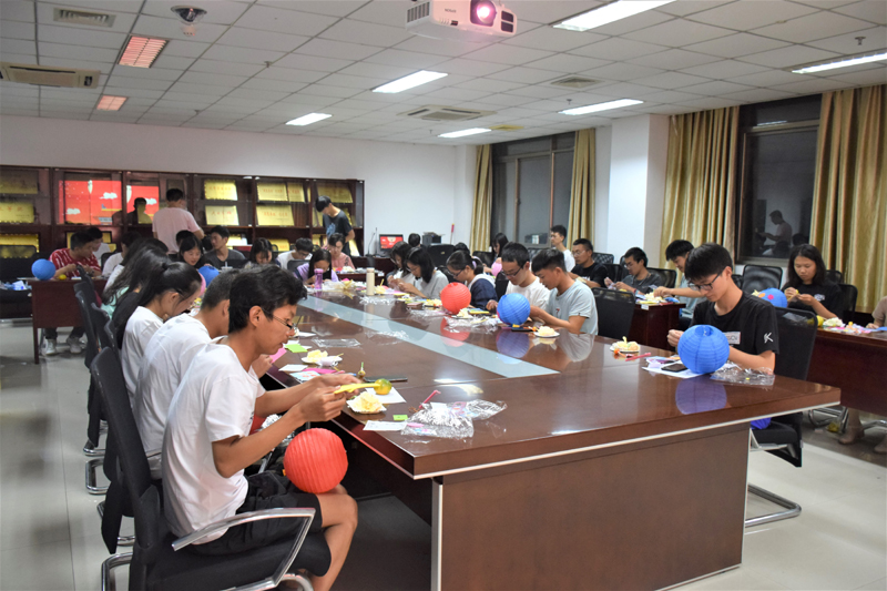 活动伊始,同学们通过观看视频了解了中秋节的传统文化习俗,以及月饼的寓意和制作方法。“小饼如嚼月,中有酥和饴。默品其滋味,相思泪沾巾。”在同学们对家乡的思念中,辅导员曾佳慧老师为大家带来了各种口味的月饼和糖果,传达了公司对每一位新生的殷切关爱。随后,每个同学都拿到了一份中秋花灯的制作材料,他们在一起一边学做花灯,一边聊着自己家乡的中秋习俗,用灵巧的双手,将玉兔、月亮、星星小心地粘贴在灯笼上,一个个五彩纷呈的花灯很快就呈现在众人的眼前。在做花灯的过程中,外省新生代表何俊杰同学演唱了一首《苦行僧》,将古风与嘻哈结合在一起,赢得了在场同学的热烈喝彩。员工干部代表徐天祺同学声情并茂地朗诵了一首《春江花月夜》,表达了他对家乡的思念和对大家的美好祝福。