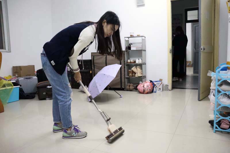 图为宿舍清扫现场。记者 顾晨龙 摄