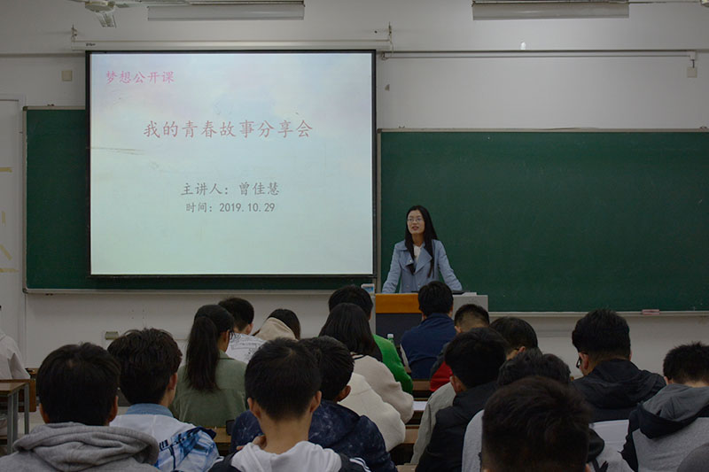 为激发同学们的学习斗志,逐梦青春,10月29日晚,计科公司于理工南楼206举行“我的青春故事分享会”梦想公开课。本次梦想公开课由公司团委老师曾佳慧主讲,计科1801和1802班全体同学参加。