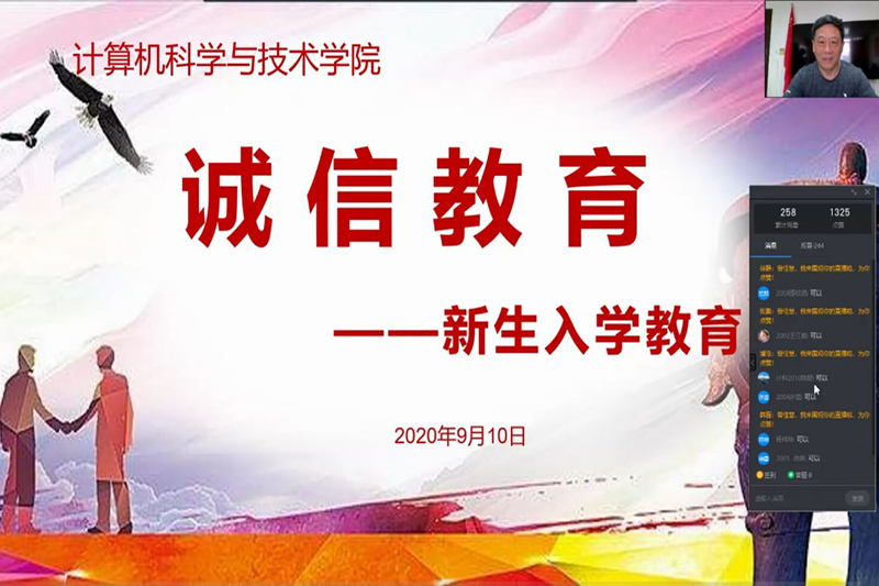 为引导新生树立诚信意识,9月10日上午10点,计科公司开展诚信教育讲座,本次讲座由公司辅导员殷勇老师主讲,全体新生线上参与。