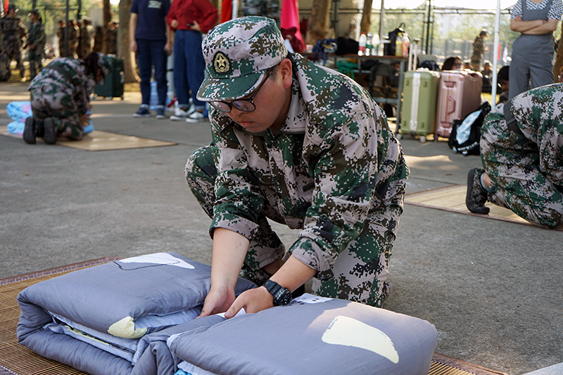 图为计科学子参加军训内务比赛 记者徐熙龙摄