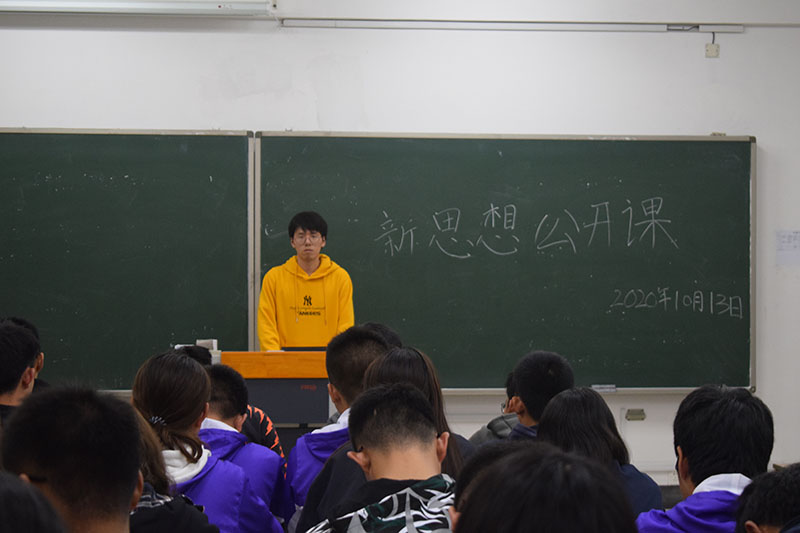 10月29日晚6点,计科公司在理工南楼216教室举行新思想公开课。本次公开课由朱栋海同学主讲,计科2020级4班和5班的同学们共同参与。