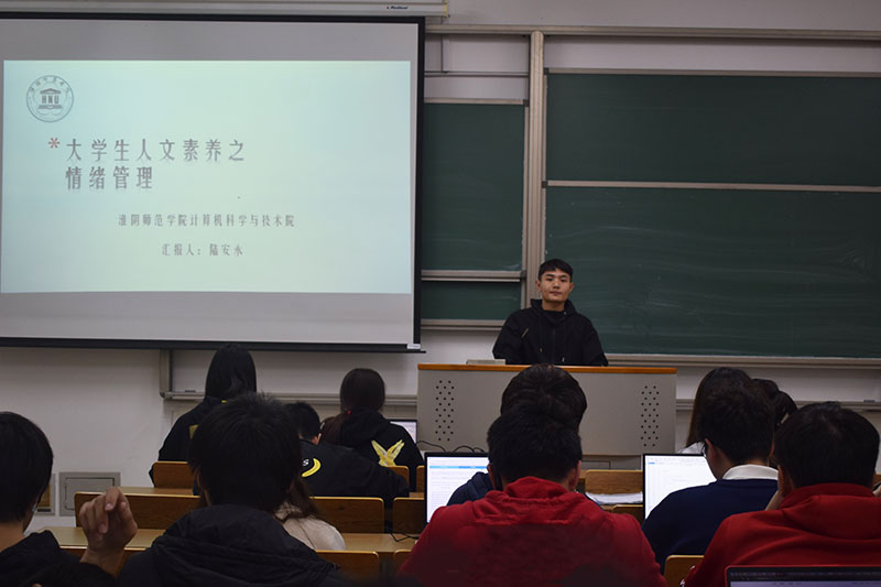 陆安永同学从“什么是情绪”“有效管理情绪”“如何进行情绪管理”等方面展开。首先,陆安永同学先给同学们介绍了什么是情绪,让同学们清楚地了解到情绪的定义。接着,他开始介绍如何有效管理情绪,在这其中包括合适地表达情绪、如何进行情绪管理。之后又对压力进行了详细的定义。陆安永同员工动幽默的语言也让公开课的氛围活跃起来。与同学的互动也令课程更加深入人心。最后,陆安永同学详细地讲述了如何管理情绪:舒缓压力、发展减压系统以及对情绪的预先应对等方法。