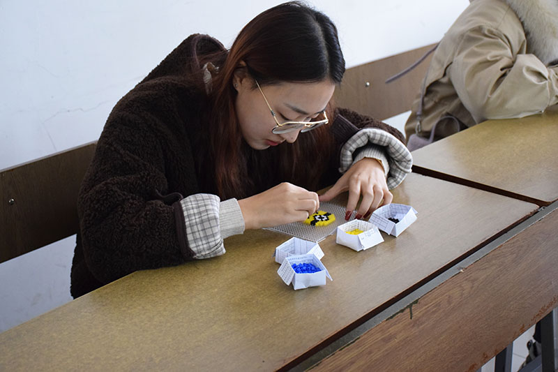 比赛会场的桌子上早已摆放好了各色的拼豆,同学们聚精会神地制作早已在脑中构思好的图案,五颜六色的色彩展现了他们内心世界的丰富多彩,风格迥异的卡通图案则体现了他们内心深处的童真童趣。随着时间一分一秒的过去,一个个可爱有趣的卡通人物纷纷诞生。最终,比赛在一片和谐欢快的氛围中结束,并评出了一等奖8名、二等奖16名、三等奖24名。