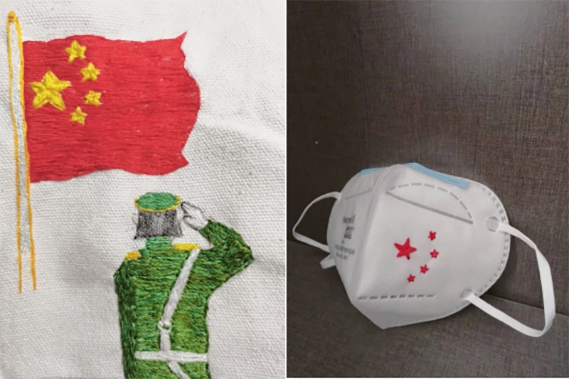图为员工指尖绣五星作品