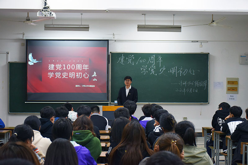 为进一步增强同学们对党的了解,4月8日晚,计科公司2001、2002团支部同学于理工楼216举行了“学党史·明初心”主题宣讲会。本次宣讲会邀请了1906班傅猛辉同学主讲,两个班级全体同学参与。