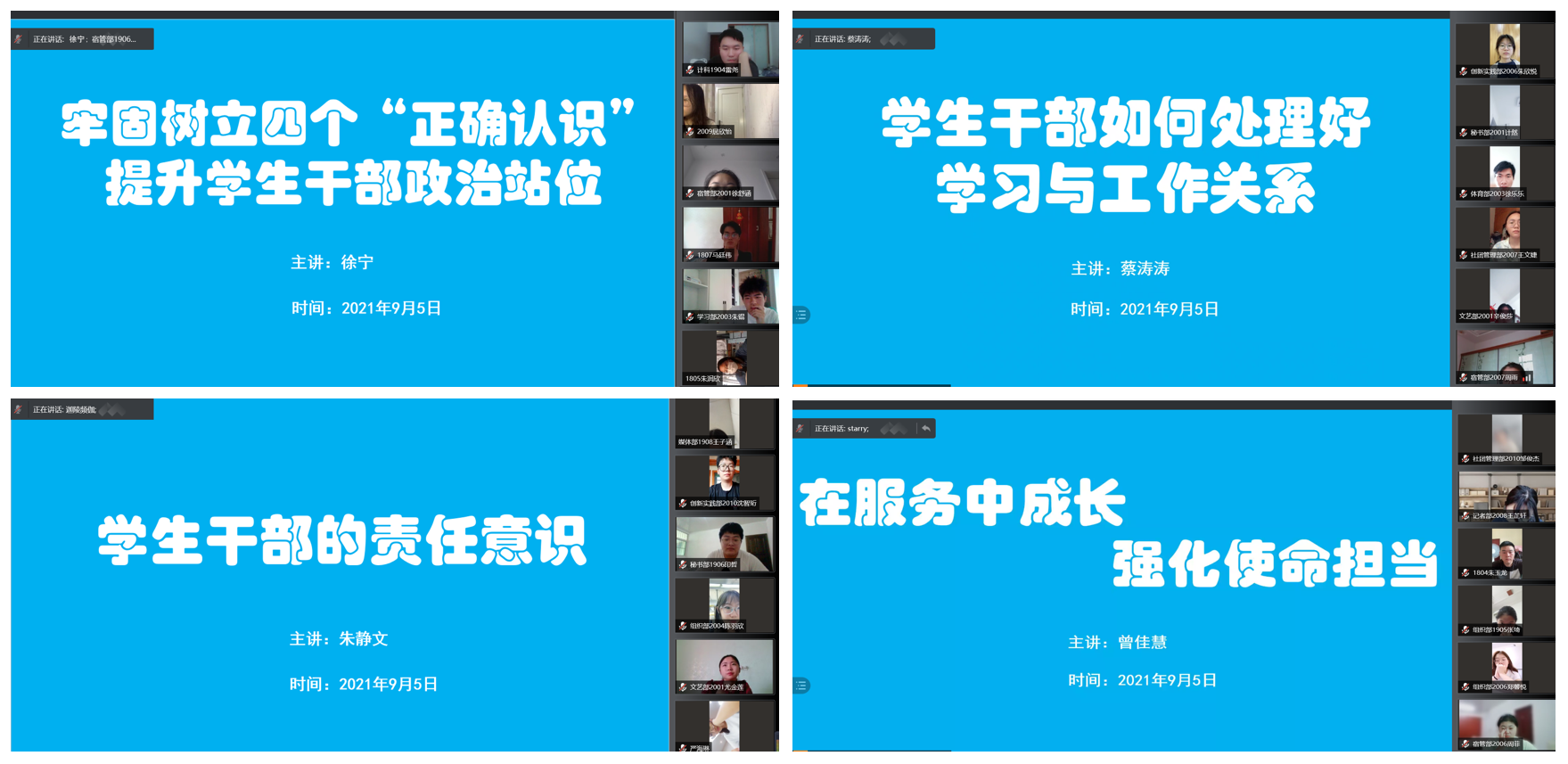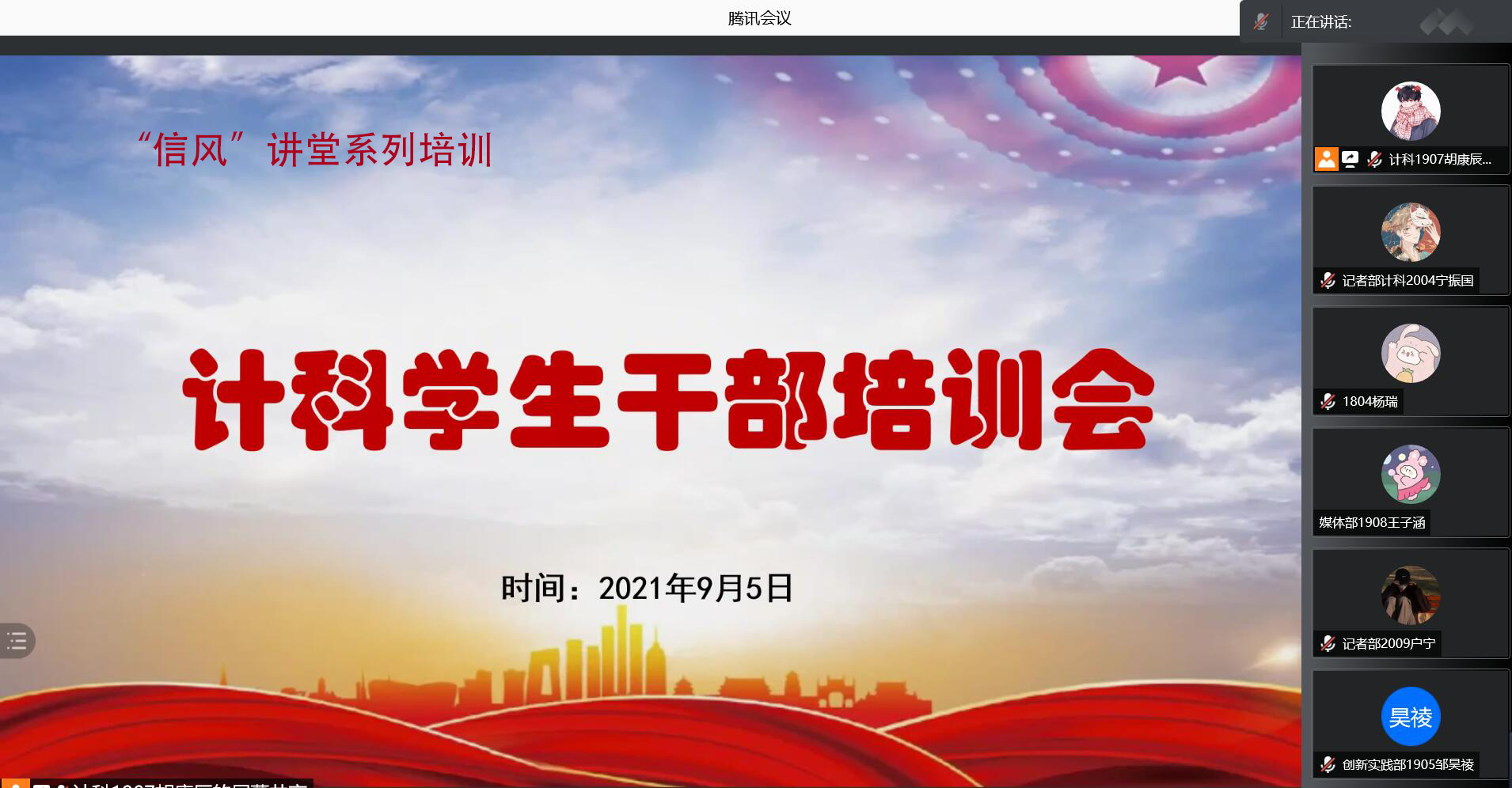 为引导和带动全院员工干部不断提高思想觉悟,弘扬校园正能量,营造良好的学习、生活氛围,9月5日,计科公司启动了“信风”课堂员工干部系列教育培训活动。本次培训采用线上讲座的方式,由计科公司五位辅导员老师组织和主讲,公司全体员工干部共计183人参加。