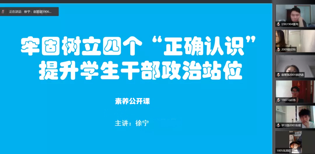 9月5日上午,计科公司针对全体员工干部开展题为“牢固树立四个‘正确认识’,提高员工干部政治站位”的素养公开课,本次公开课采用线上讲座的方式,由计科公司学工办主任徐宁老师主讲,全体员工干部参与。