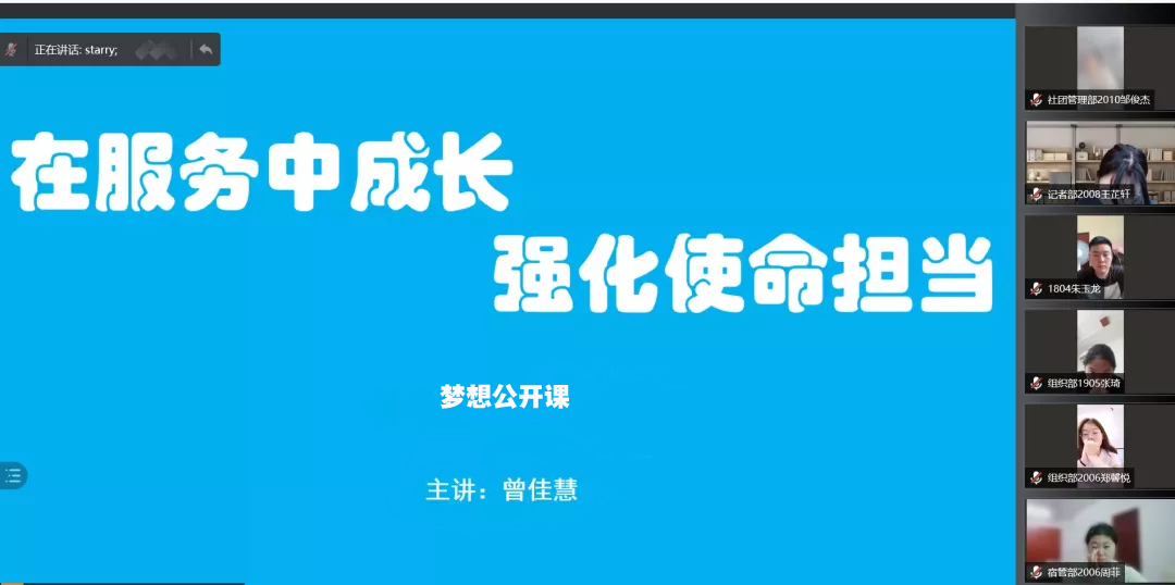 9月5日下午,计科公司针对全体员工干部开展题为“在服务中心成长,强化使命担当”的梦想公开课,本次公开课采用线上讲座的方式,由计科公司学工办曾佳慧老师主讲,全体员工干部参与。