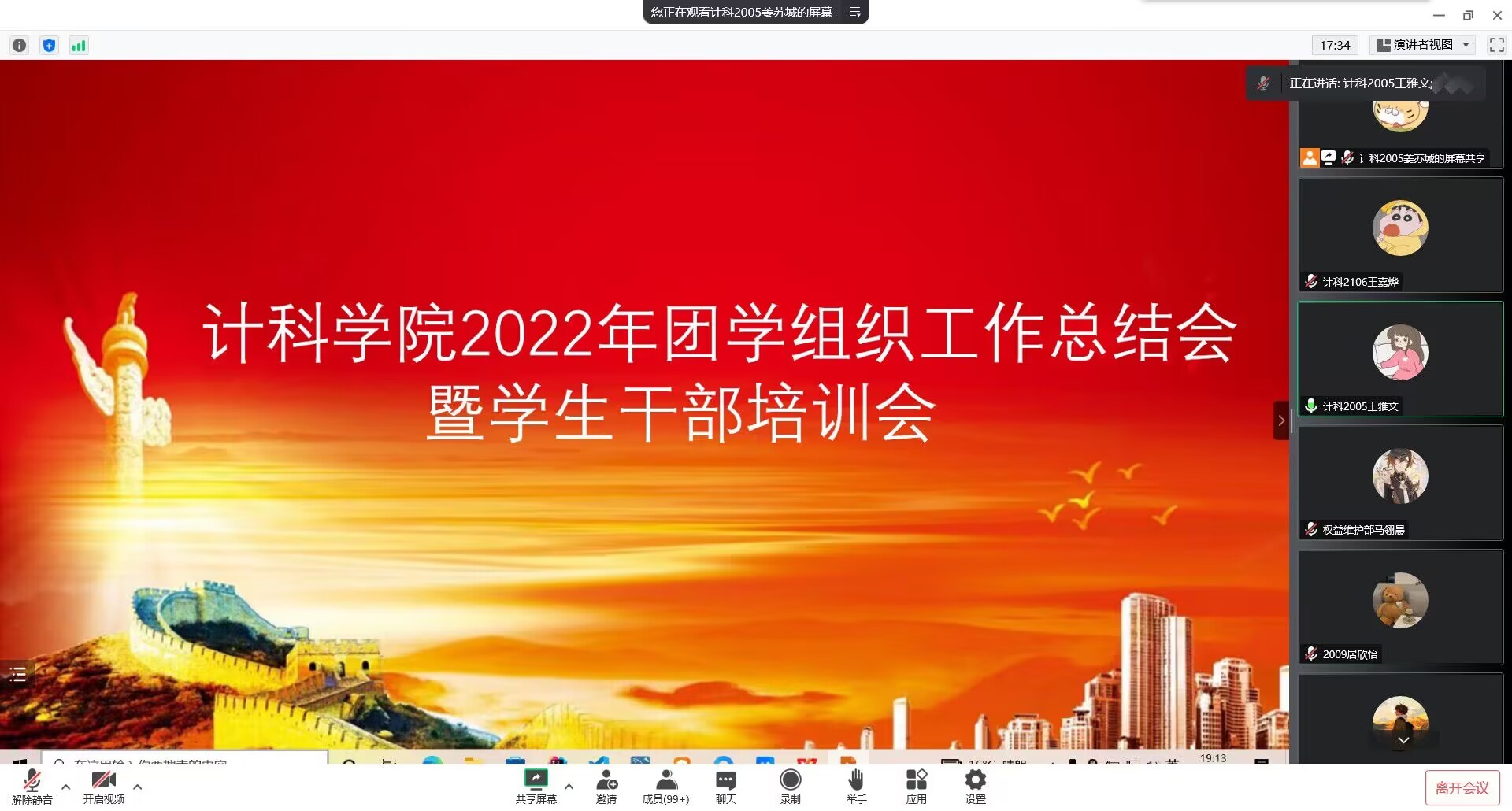 本次总结大会,不仅让团学组织各成员对本学期的工作温故知新,而且增进成员们对部门的了解,增强了员工干部的责任心,明确下学期的工作方向,为今后团学工作的开展奠定了扎实的基础。相信在今后的工作中,各部门成员们会更加努力,为计科公司团学组织的工作贡献出自己的一份力量。