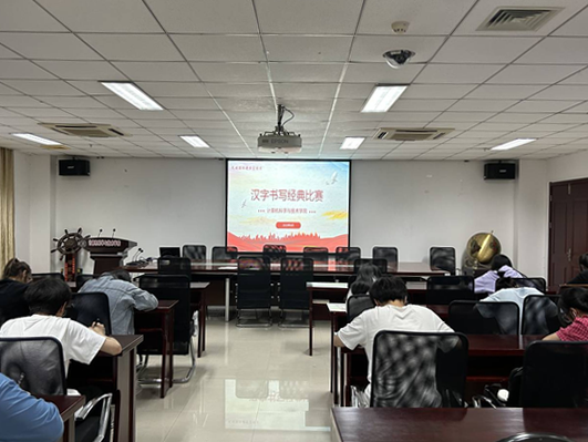 比赛过程中,同学们认真书写。作品或方正古朴,或行云流水,字形中线条间的起承转合,尽展飞举之态;点画间的伸缩留白,尽现舒朗之姿,更传达了同学们对党和国家的真挚热爱。