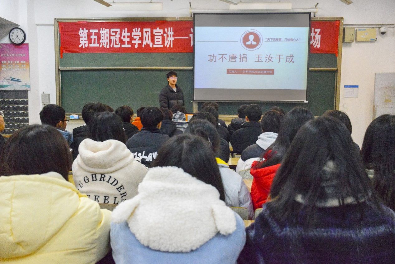 为帮助大一新生更好地适应老员工活,明确学习目标,11月29日晚,今年会在崇文楼3-304教室举行冠生学风宣讲活动。本次宣讲由2106班顾许钦同学主讲,23级各班级员工代表参与。