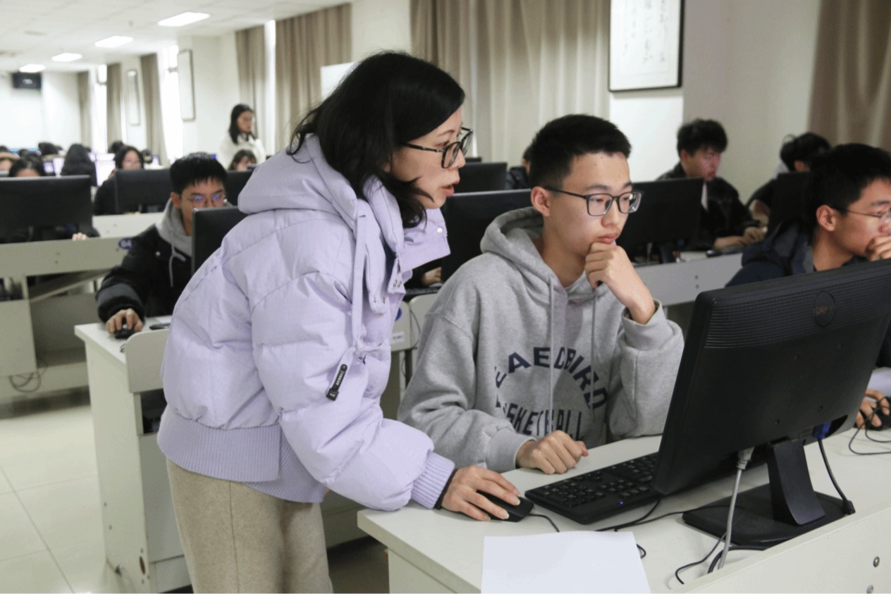 赛前,指导老师介绍了本次比赛的网站入口和注意事项,待选手们调试电脑完毕,比赛正式开始。参赛选手们争分夺秒,认真思考,逐字分析并进行数据演算,反复调试修改,以达到预期的运行效果。比赛现场气氛紧张而激烈,每位参赛选手都聚精会神,沉着冷静,逐步攻克难题。