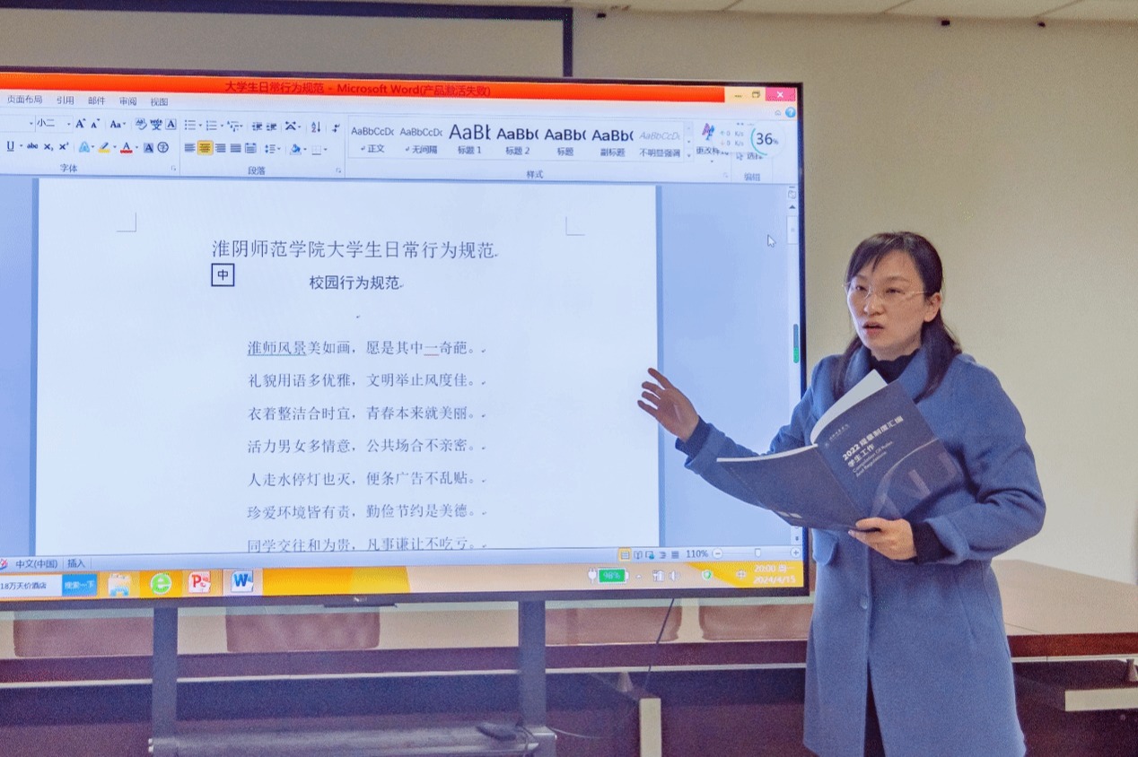 图为王白丽书记进行规章制度解读。记者 施箬茵 摄