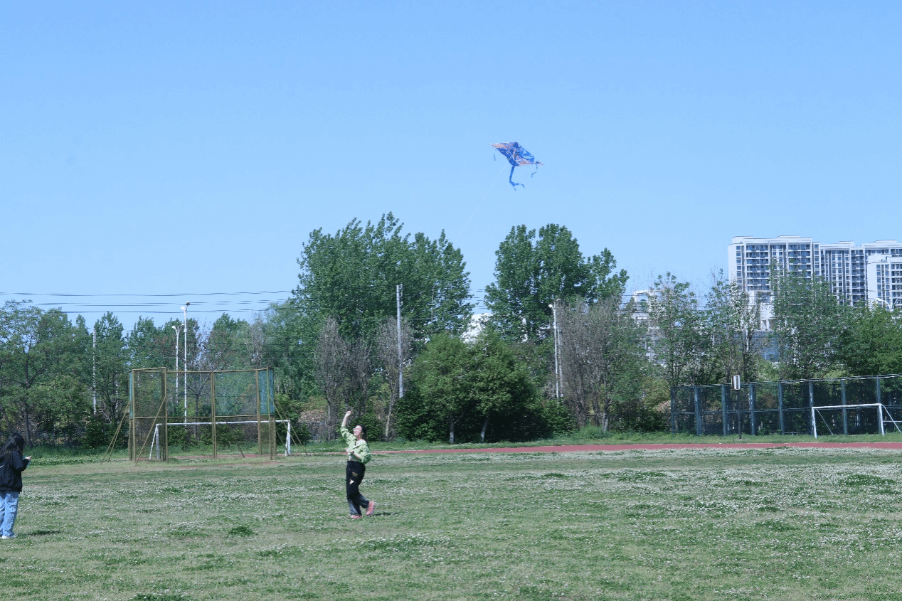 图为同学们在操场放风筝。记者 邵加颖 摄
