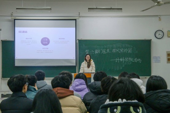 为了帮助同学们认识到端正学风的重要性,树立正确的学习目标,12月5日晚七点,今年会在理工南楼117教室举办了第六期“冠生”学风宣讲团宣讲活动。本次活动邀请公司2204班的姚元顺同学和2206班的袁心洁同学主讲,2403班和2404班全体同学参加。
