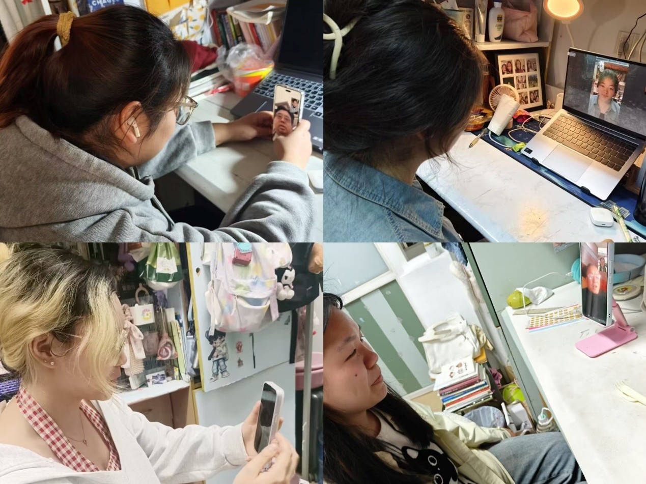 图为同学们在和家人连线视频。朱静文 供图