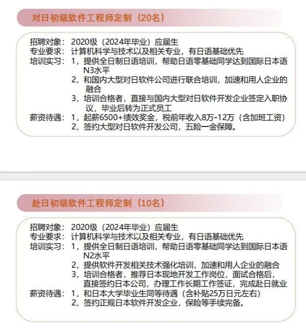 本次招聘会针对2024届毕业生计算机科学与技术以及相关专业,有日语基础优先。欢迎2024届毕业生积极投递简历。