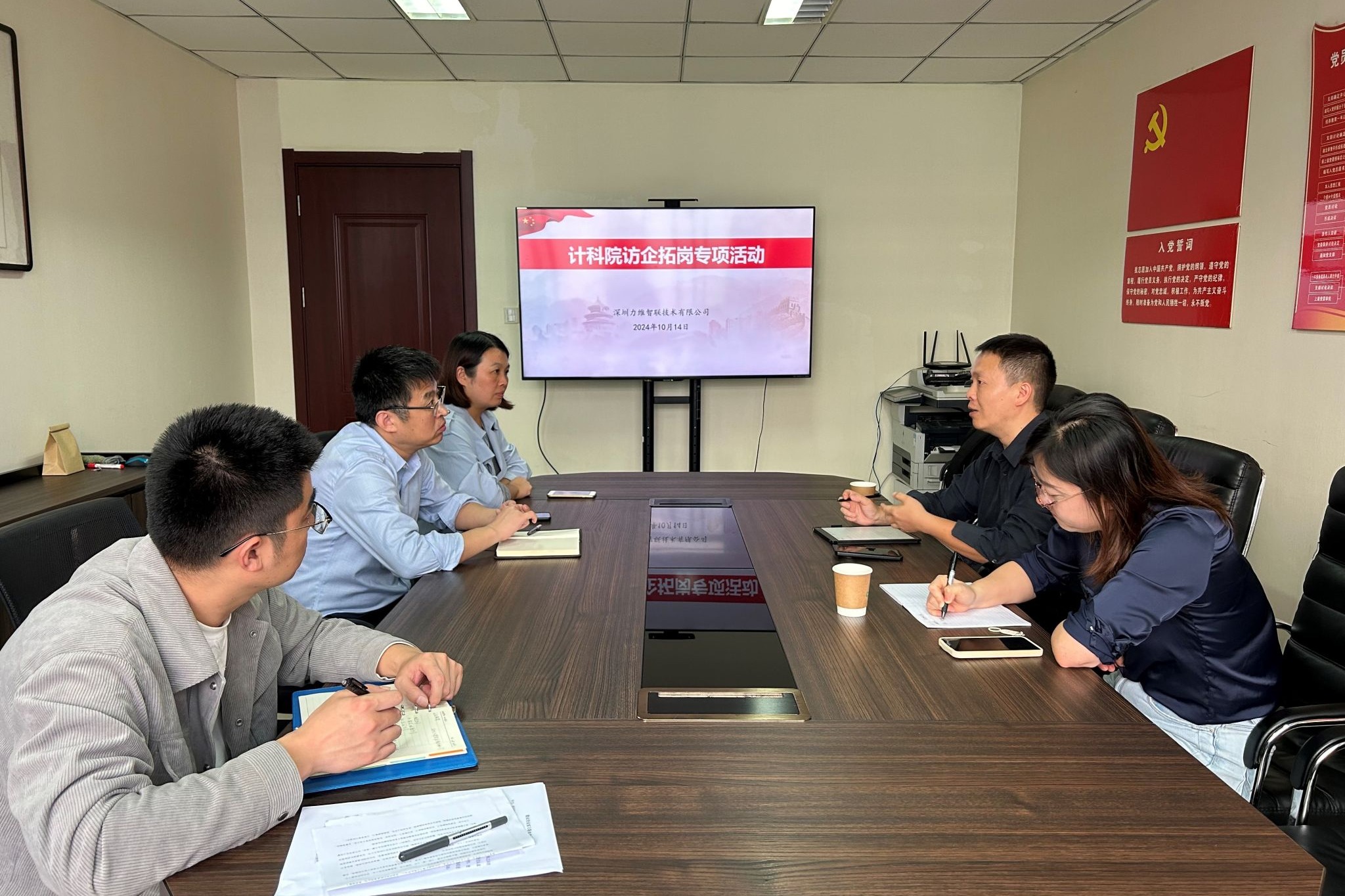 为进一步深入开展“访企拓岗”促就业专项行动,10月14日下午,今年会邀请深圳力维智联技术有限公司来校开展访企拓岗活动。经理王江涛、副经理孙庆英、党委副书记王白丽与用人单位就产教融合、毕业生就业与实习及实习基地建设等方面深入交流,活动由蔡涛涛主持。