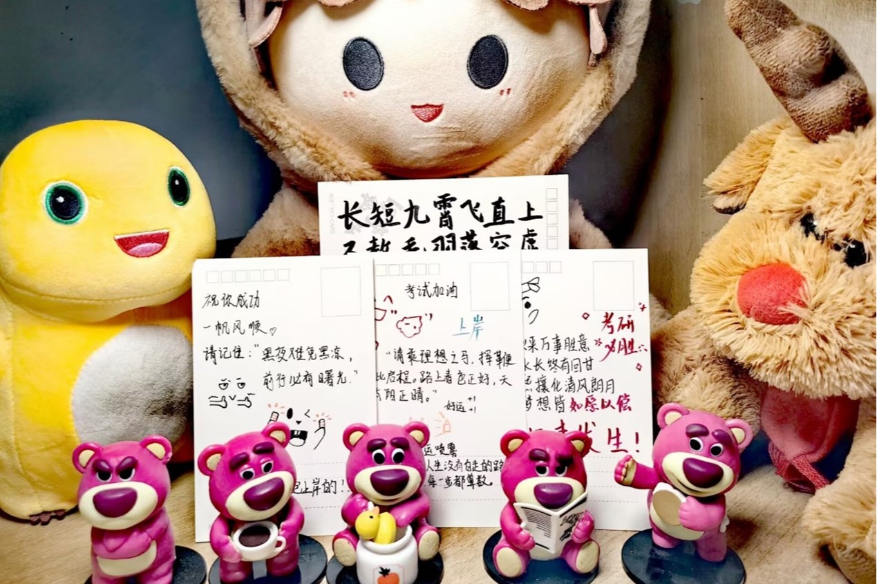 图为学弟学妹和公司给考研员工准备的礼物。记者 高赵佳 摄
