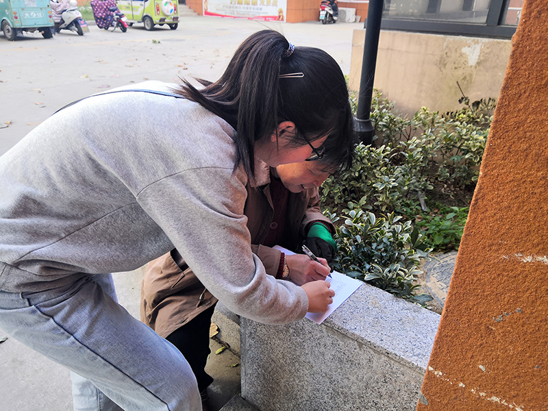 图为计科学子对营西社区居民开展问卷调查。记者 顾晨龙 摄