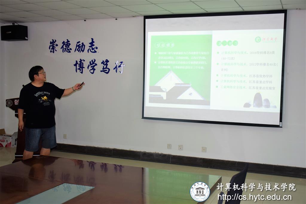(图为张建明教授阐述江苏大学计算机科学与技术专业情况 记者钱正琪摄)