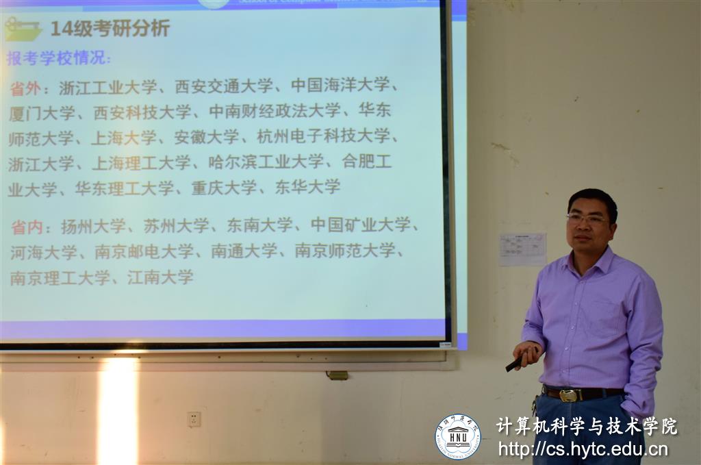 为进一步加强同学们对考研的认识,了解前沿就业形势,10月31日下午4点,计科公司在理工楼西阶103教室举办了考研讲座。讲座由副经理郭立强主讲,16级志愿考研的员工参与。