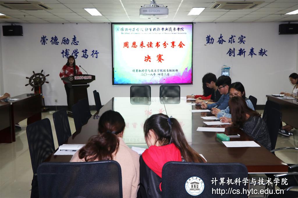 4月3日晚上7点,计科公司于理工北楼515新会议室举行了周恩来读书分享会决赛。经过初赛的激烈角逐,有十位选手脱颖而出,进入决赛。比赛由公司五位员工干部代表担任评委。