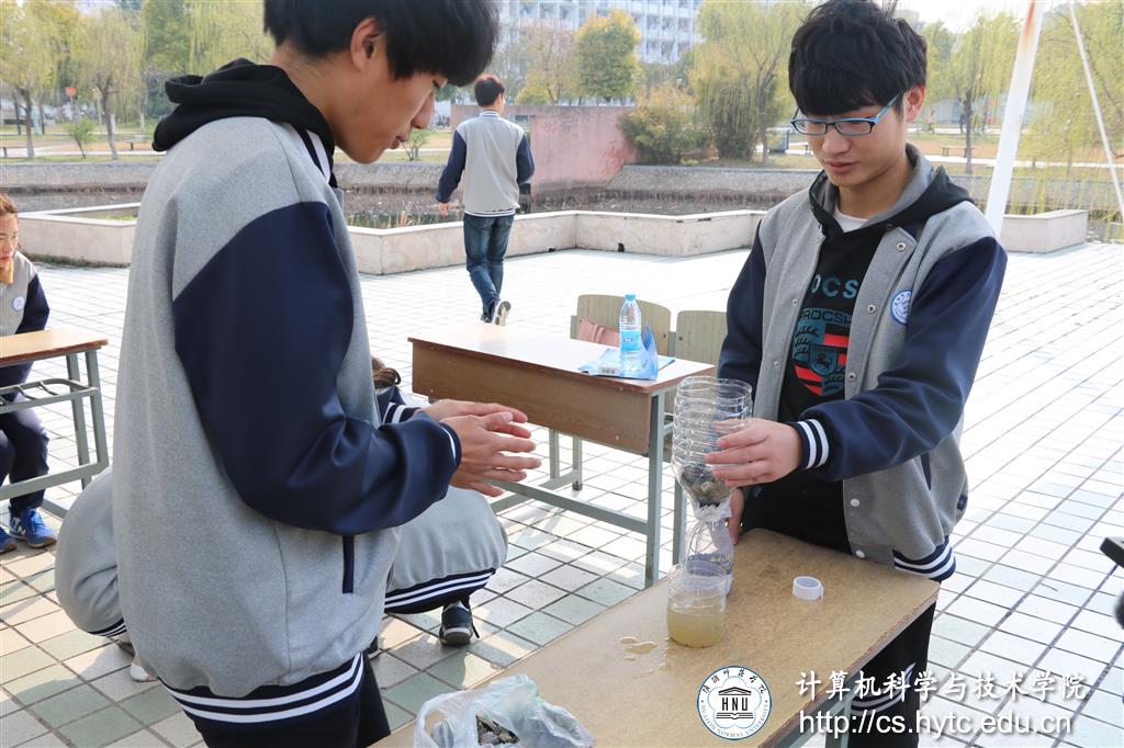 同时,活性炭净水活动在校园的映月湖畔顺利开展。同学们开动脑筋,用自己的智慧制作了许多活性炭净水装置,浑浊的湖水经过一次次地净化,最终变得清澈透明,净水活动获得成功。此外,同学们还在南苑宿舍楼附近分发“世界水日”传单,呼吁更多的同学珍惜水资源。