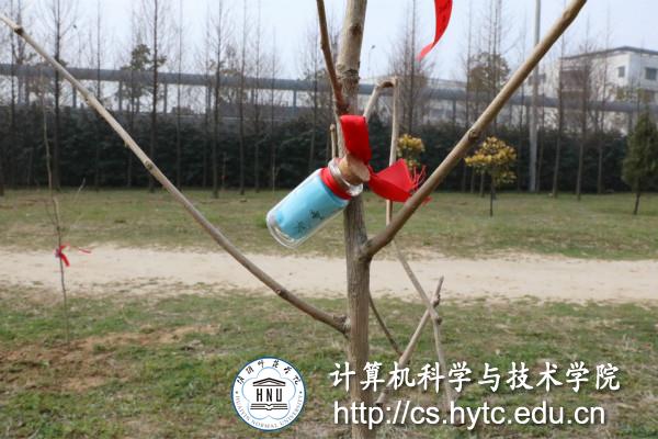 (图为志愿者们挂在树上的许愿瓶 记者徐嘉晨 摄)