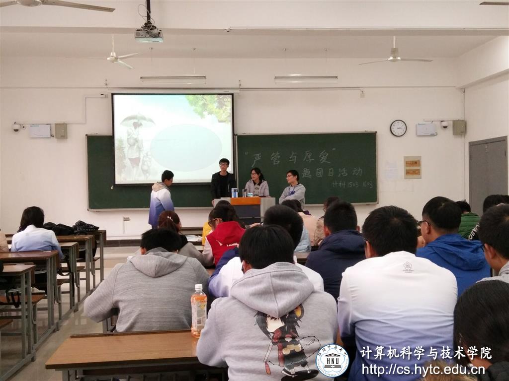 为了让同学们深刻体会到父母与老师的“严管”其实是另一种形式的“厚爱”,计科1603班与1503班于11月9日在理工楼南101联合举办了以“严管与厚爱”为主题的团日活动。