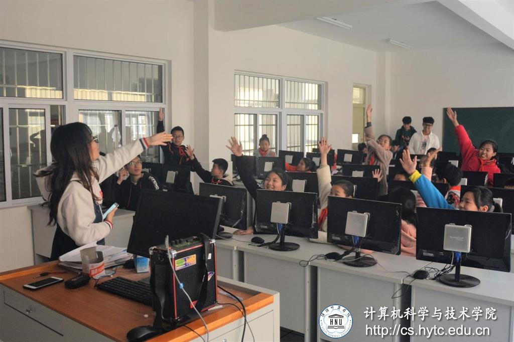 活动中,计科公司机器人竞赛团队的同学们来到银川路小学,开始了他们人生中第一堂精彩有趣的Scratch编程教学课。在正式教学前,同学们先与小员工进行沟通交流,了解他们对编程的知晓程度,帮助增进教学气氛,促进教学效果。课堂中,为了使小员工更好地掌握编程知识,同学们设计了一些趣味小游戏,在游戏的进行当中向小员工讲解循环结构的相关知识,使他们在愉快的气氛中领会学习内容。此外,同学们不断让小员工主动动手运用Scratch软件,尝试简单的编程,并耐心地教他们如何将自己脑海中所想象的画面变为现实。在整个教学过程中,同学们和小员工相处融洽,沟通顺畅,最终达到了预期的教学效果。